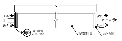 每一支膜元件在出廠時均包含一個濃水密封圈、一個連接適配器以及配套的O型圈。膜元件密封在聚乙烯塑料袋中并添加濃度不大于1.0%的亞硫酸氫鈉溶液作為保護液,然后包裝在紙箱中。